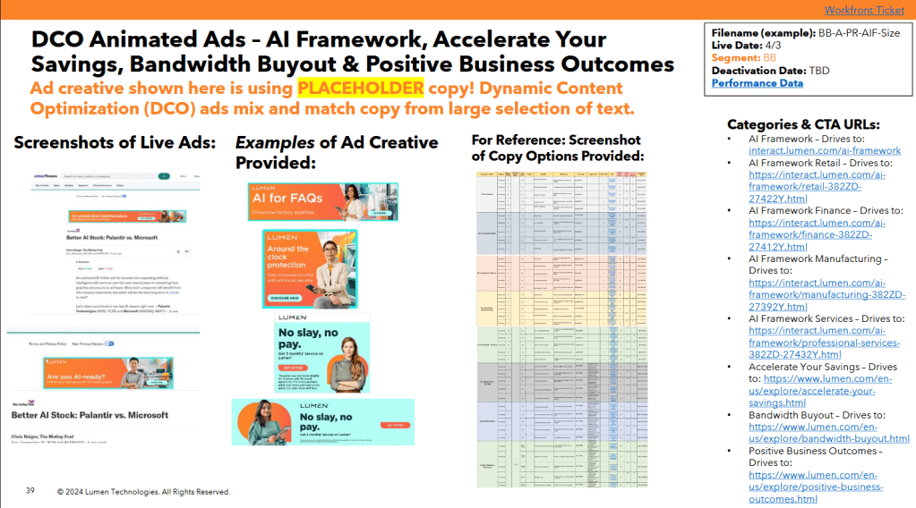 Juggling stakeholder messaging, platform and design constraints–all while getting creative buyoff from our CD and ACD–helping produce a unified suite of assets such as this campaign delivered was an incredible amount of hard, rewarding work.